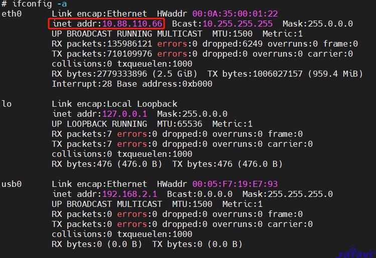 ifconfig eth0 10.88.110.66