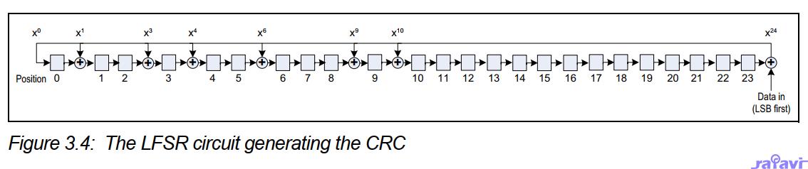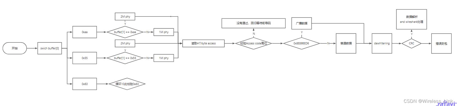 3)C语言程序收到GFSK解调( Demodulation )后的数据就行解析(寻找前导码/读取Access code/读取PDU header/读取PDU payload/读取CRC/去白PDU跟CRC/CRC校验等步骤)