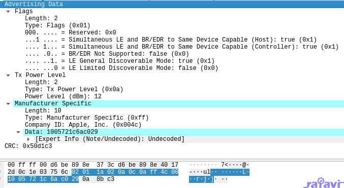 - 0x0400 indicates the CRC portion of the LE Packet was checked